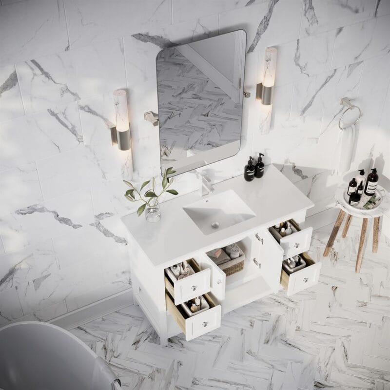 A coastal bathroom vanity channels sand-and-sky calm with light woods, airy paint colors, and simple forms. It’s about natural light, easy-clean materials, and a palette that stays fresh all year. Whether you live by the water or just love the vibe, this look is timeless, relaxed, and remarkably practical.