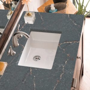 Choose from one of our 3 cm tops eased edge with undermount white porcelain rectangular sink(s)