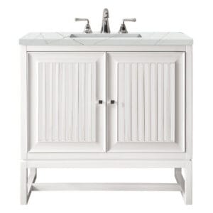 Bring a bit of The Greek Island Home With The Athens Modular Collection 30-in. Free-standing Single Vanity in Glossy White by James Martin Vanities, the perfect choice for any bathroom interior upgrade.