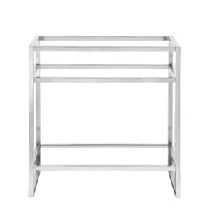 The Boston 31.5″ Stainless Steel Console by James Martin Vanities is a beautiful small space solution that will work well in any powder room. This space-conscious console is crafted with a durable stainless-steel base in Satin Nickel, giving you the clean lines and an open view that will work well with a variety of different decors. This versatile cabinet includes a White Glossy composite top with an integrated sink for a modern clean look that is pre-drilled for your convenience for a single hole faucet (faucet not included with purchase). The modern designed storage cabinet below is the perfect place to stow extra towels or any other bathroom essential you may need, or opt to include the storage cabinet.
