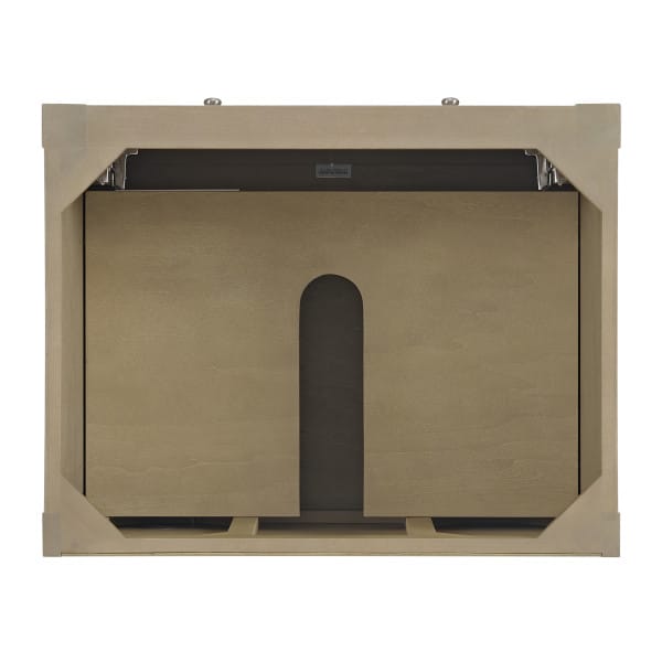 The Breckenridge 30″ Single Vanity Cabinet is a fresh take on traditional Mission furniture that easily transitions to Modern Farmhouse style with an air of understated sophistication. Satin Nickel knobs complement the Whitewashed Oak finish, while the neatly inset door and drawer fronts lend a fresh appeal to this clean-lined classic. A two-door cabinet opens to reveal an interior shelf equipped with convenient built-in USB/120V power outlet. This console-style vanity also features an open lower shelf for additional storage. Complete the look with one of our 3 cm tops.