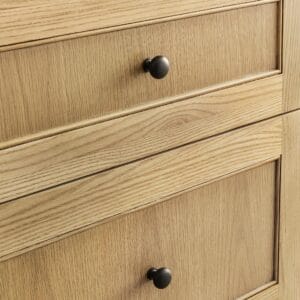 The Breckenridge 36″ Single Vanity by James Martin Vanities is a fresh take on traditional Mission furniture that easily transitions to Modern Farmhouse style with an air of understated sophistication. Matte Black knobs complement the Light Natural Oak finish, while the neatly inset door and drawer fronts lend a fresh appeal to this clean-lined classic. A single-door cabinet opens to reveal an interior shelf equipped with convenient built-in USB/120V power outlet. This console-style vanity also features two top-row tip-out drawers, two standard full-extension drawers, and an open lower shelf for additional storage. Select one of our countertops to complete your vanity.