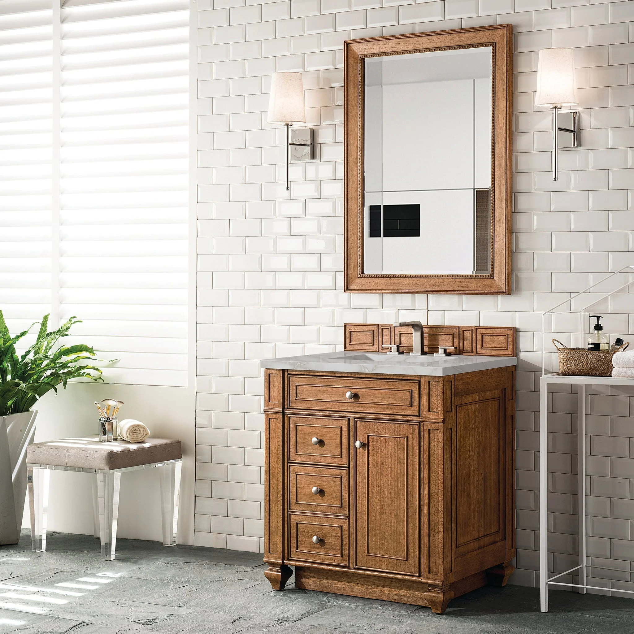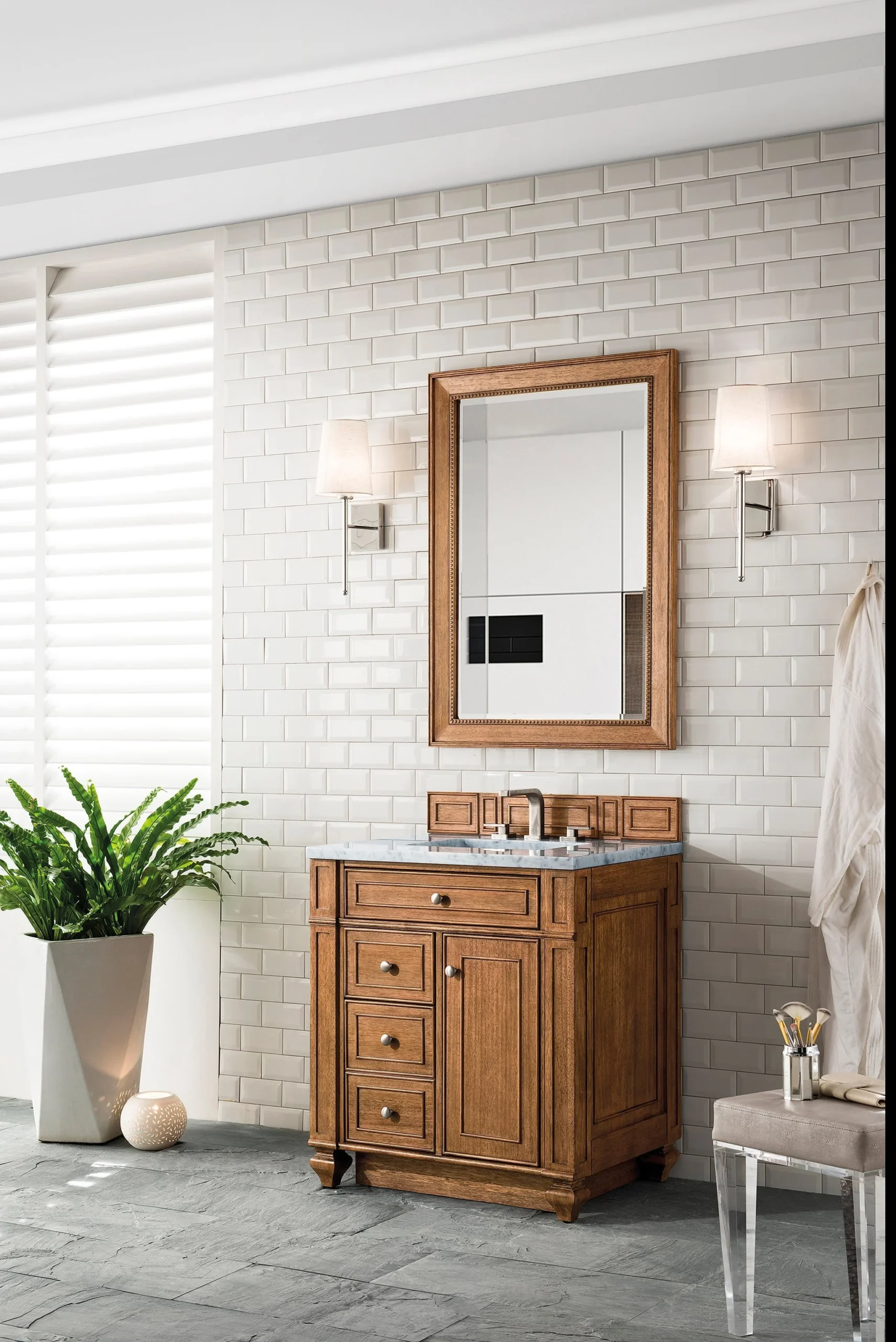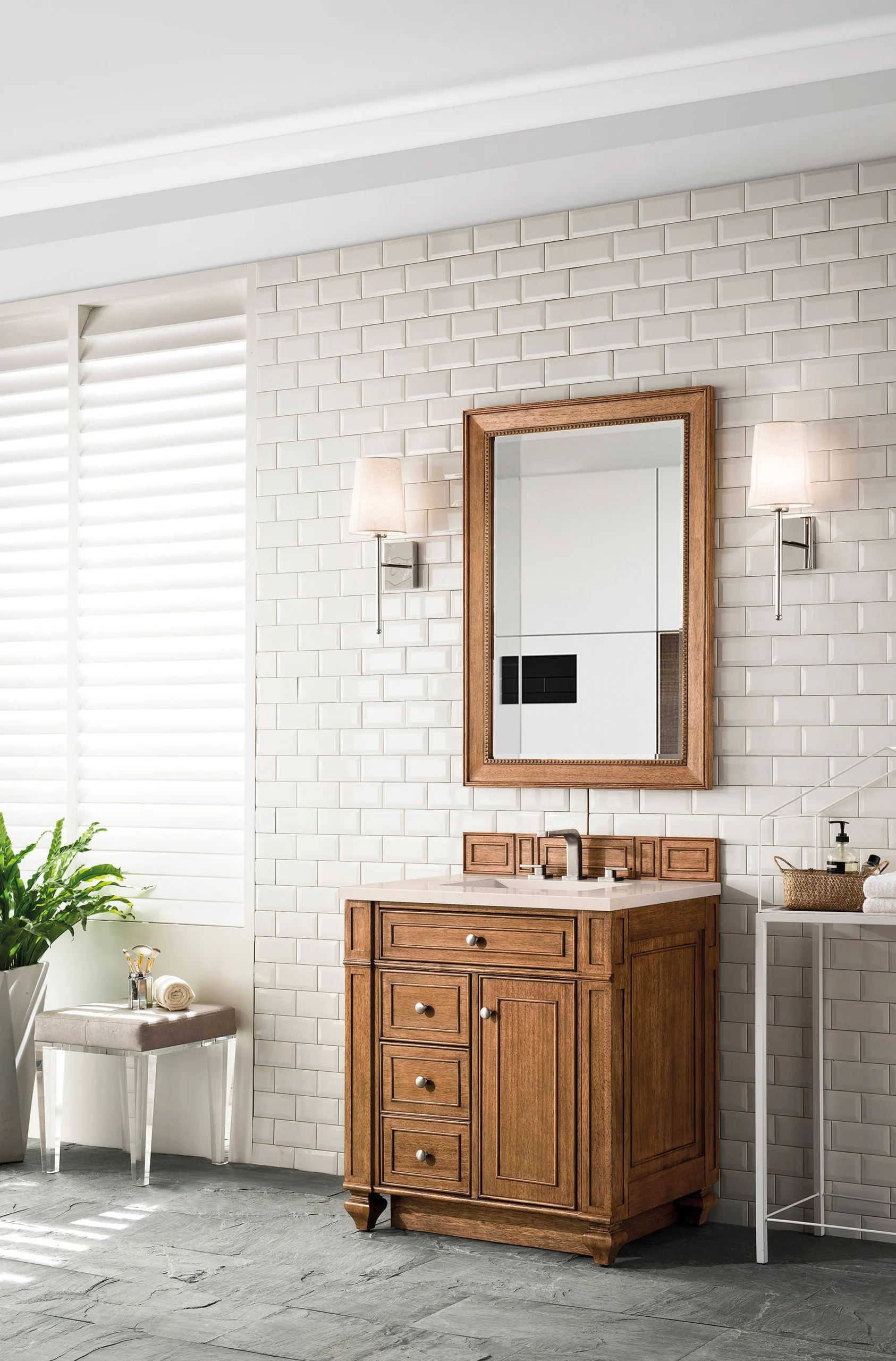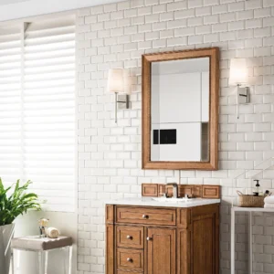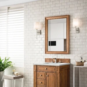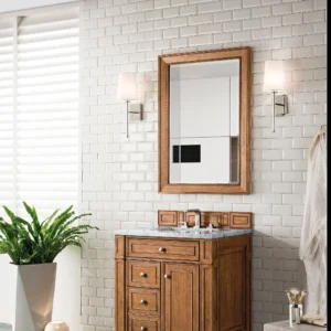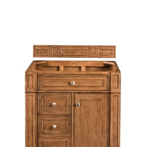 The Bristol 30″ Saddle Brown Single Vanity by James Martin Vanities is a perfect blend of elegance and practicality for your bathroom. This detailed and distinctive vanity is designed with ample storage to offer, featuring an upper tip-out drawer, two standard aluminum-lined drawers, and a door that opens to reveal an internal shelf.