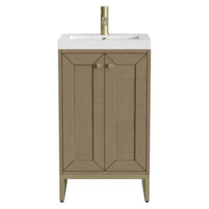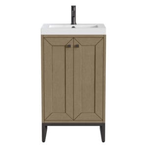 The Chianti 20-in. Vanity by James Martin Vanities is a classic shape that is topped with a rectangular solid surface top that gives it a transitional style. The body of the product is crafted from solid hardwood in a Walnut Whisper finish, which gives the piece a clean, crisp look. It’s a Perfect Vanity for your small bathroom.