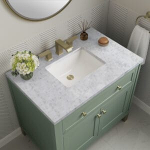 The sophisticated details and clean lines of the Chicago 36″ Single Vanity by James Martin Vanities make it the perfect choice for any bathroom. Featuring a Smokey Celadon finish, this vanity offers ample storage with its two-door cabinet, adjustable interior shelf, and top-row tip-out drawer.