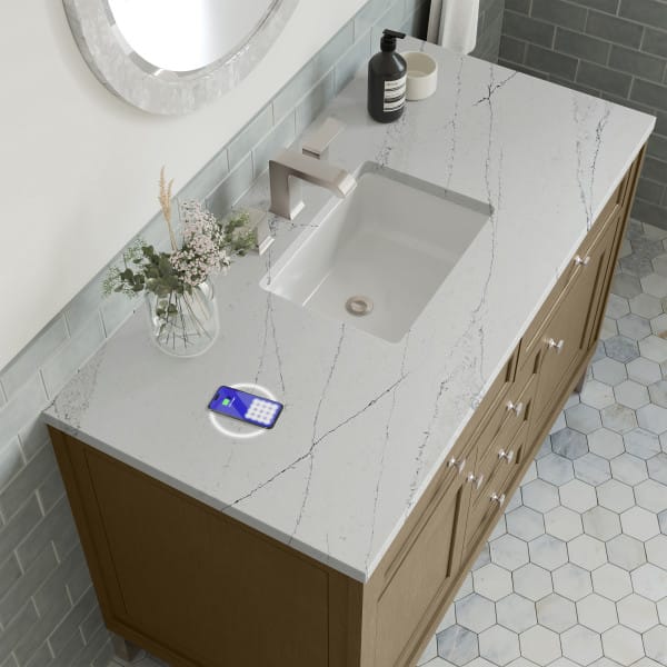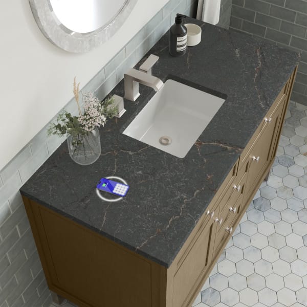 The sophisticated details and clean lines of the Chicago 48″ Single Vanity by James Martin Vanities make it the perfect choice for any bathroom. Featuring a Walnut Whisper finish, this vanity offers ample storage with its two single-door cabinets, adjustable interior shelves, and four drawers (three standard; one double-deep).
