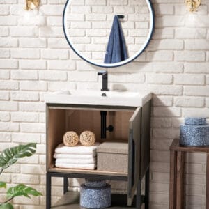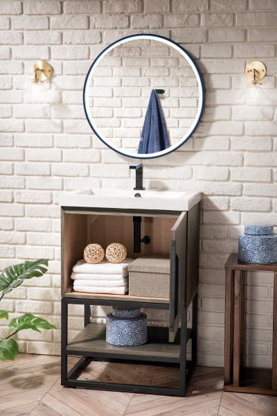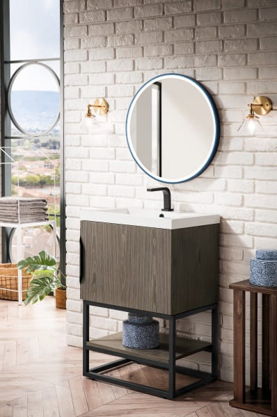 Columbia 24″ Single Vanity Cabinet in Ash Gray with Matte Black Base