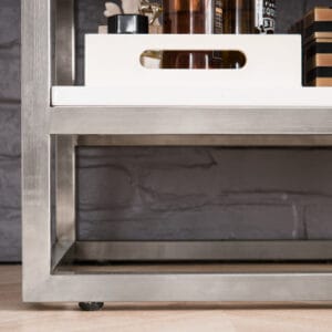 - Brushed aluminum laminate drawer bottoms