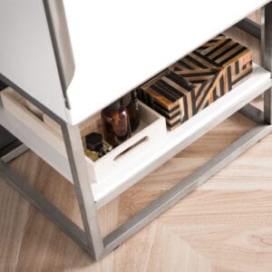 Columbia 24″ Single Vanity Cabinet in Glossy White with Brushed Nickel Base