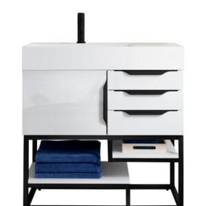 Columbia 36″ Single Bathroom Vanity in Glossy White with Matte Black Base