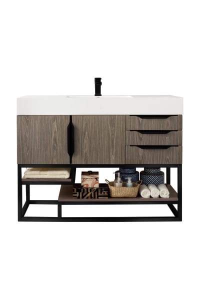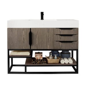 Columbia 48″ Single Bathroom Vanity in Ash Gray with Matte Black Base
