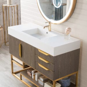 Columbia 48″ Single Bathroom Vanity in Ash Gray with Radiant Gold Base