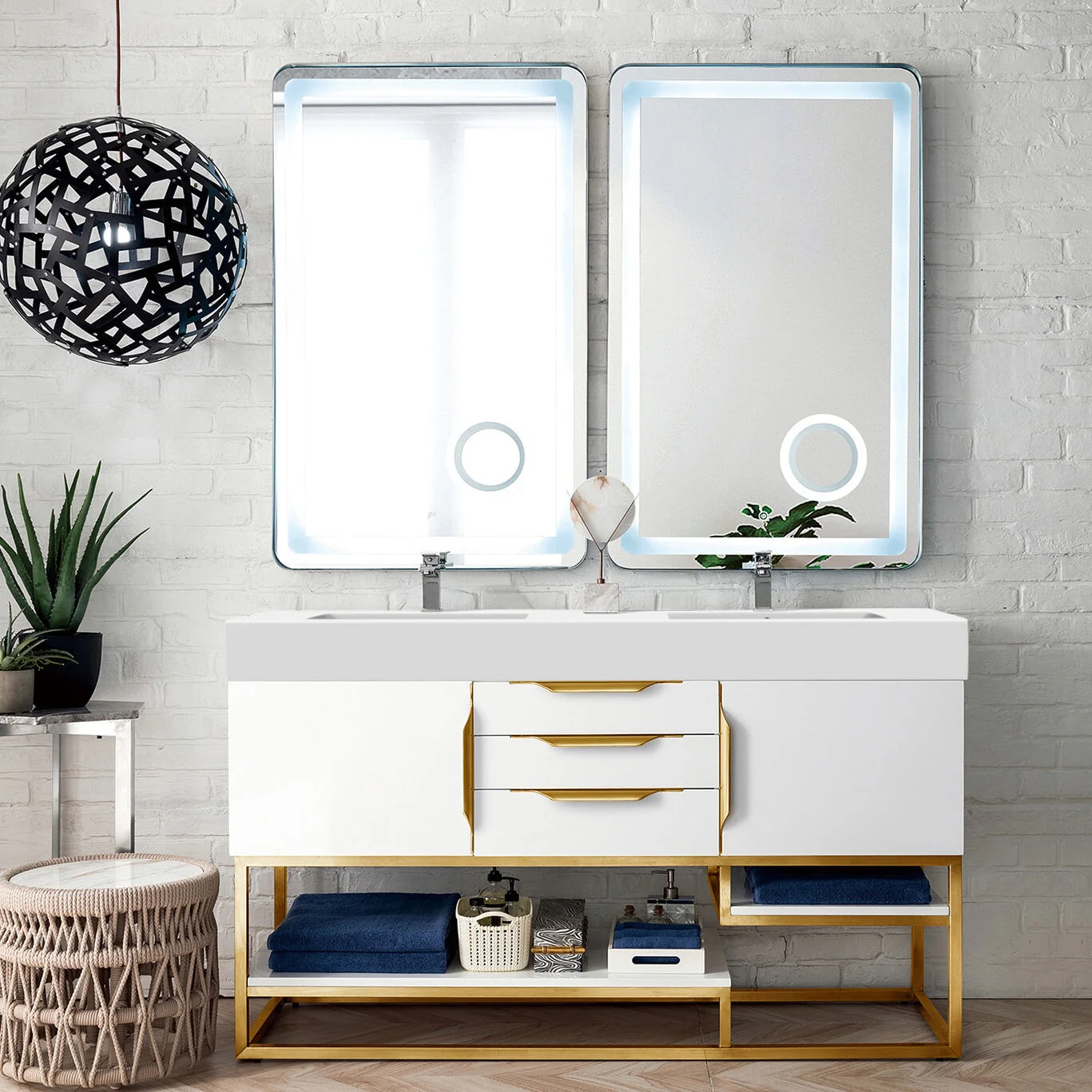 Columbia 59″ Double Bathroom Vanity in Glossy White with Radiant Gold Base