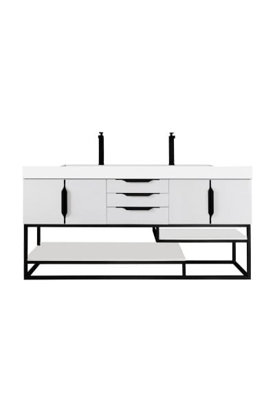 Columbia 72″ Double Bathroom Vanity, Glossy White, Matte Black Base