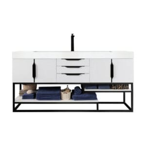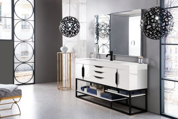 Columbia 72″ Single Bathroom Vanity, Glossy White, Matte Black Base