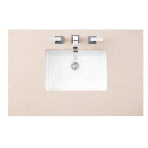 Introduce a touch of warmth and elegance into your space with the Eternal Marfil polished vanity top. Featuring soft orange veining on a warm cream background, this countertop exudes a sense of calm and serenity, bringing effortless beauty and tranquility to your home.