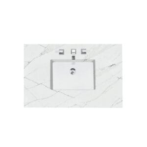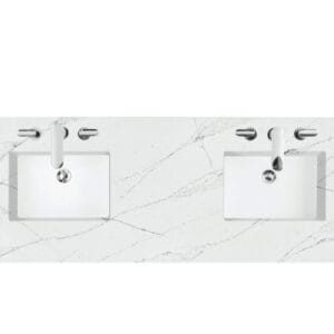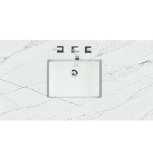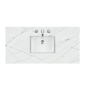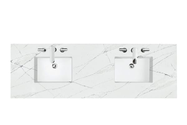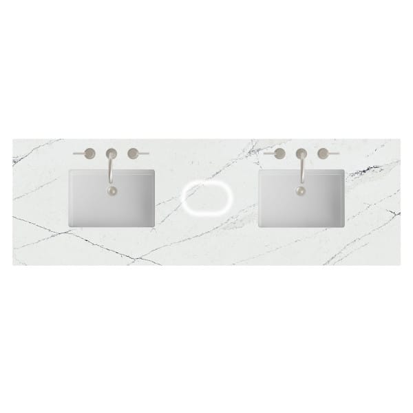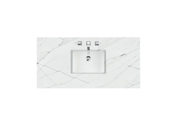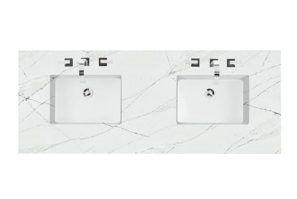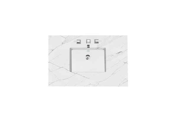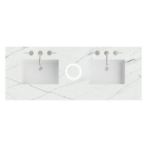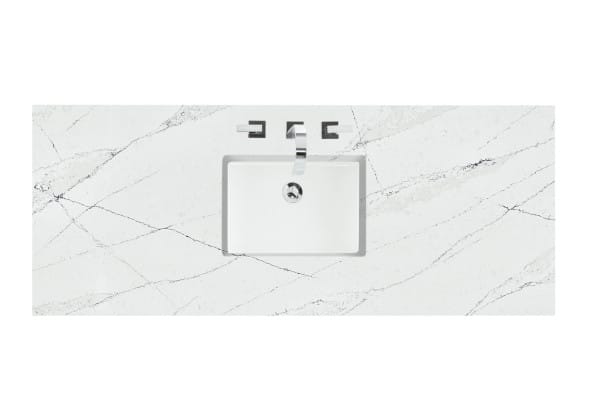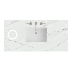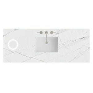 The Ethereal Noctis vanity top offers a sophisticated allure. The striking black veining adds an elegant contrast to the textured white background, while delicate grey detailing creates stunning visual depth. Dynamic and refined, this beautifully polished vanity top is perfect for adding a touch of modern sophistication to your bathroom.