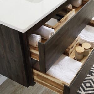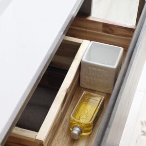 Crafted from premium solid acacia wood, known for its enduring beauty and strength, this vanity brings a touch of modern luxury and warmth to any space. With its bold silhouette and warm wood tones, the Fresca Formosa 48” vanity seamlessly combines elegance and functionality. Two spacious drawers provide ample storage to keep your daily essentials organized and easily accessible. The included countertop and undermount ceramic basin complement the vanity’s design, creating a cohesive and visually appealing ensemble.