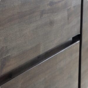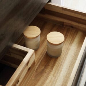 - Two soft-closing dovetail drawers with solid acacia wood fronts and pine frames