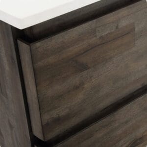 With six solid wood, soft-closing dovetail drawers, this bathroom vanity features tons of storage, ideal for keeping a family organized. While all drawers provide plenty of space, the bottom drawers are deeper with full storage capacity. The solid pine drawers are clear coated to protect the natural beauty of the wood, and feature a mitered, wrap-around design that adds to the superior detailing. Cove routed pulls are carved directly into the drawers keeping the design sharp and sophisticated.