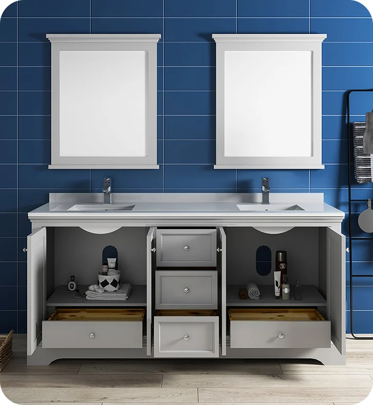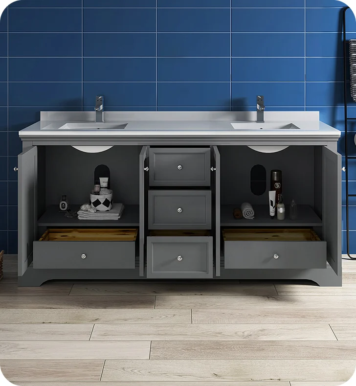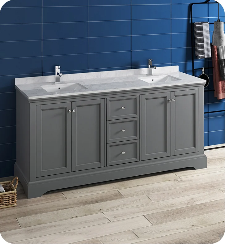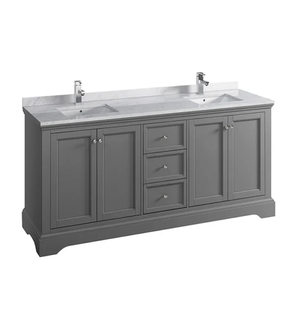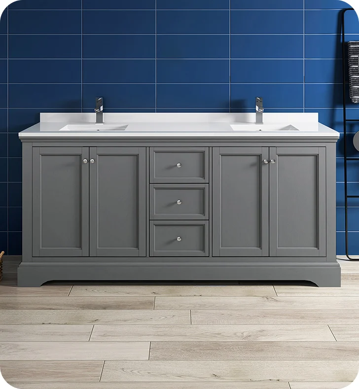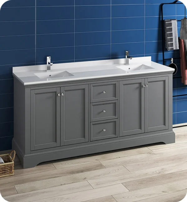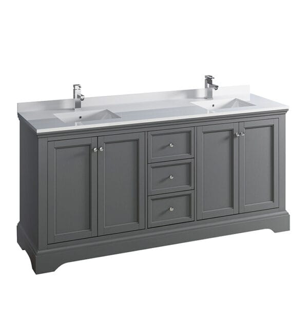 Fresca Windsor 72″ Gray Textured Traditional Double Sink Bathroom Cabinet with Top & Sinks