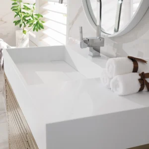 - Glossy White or Dusk Grey Composite Stone integrated top and sink