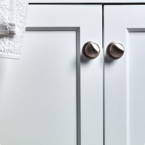 - Traditional Shaker-style design adds sophistication to guest or primary baths