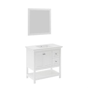 Manchester 36″ White Traditional Bathroom Vanity with Mirror