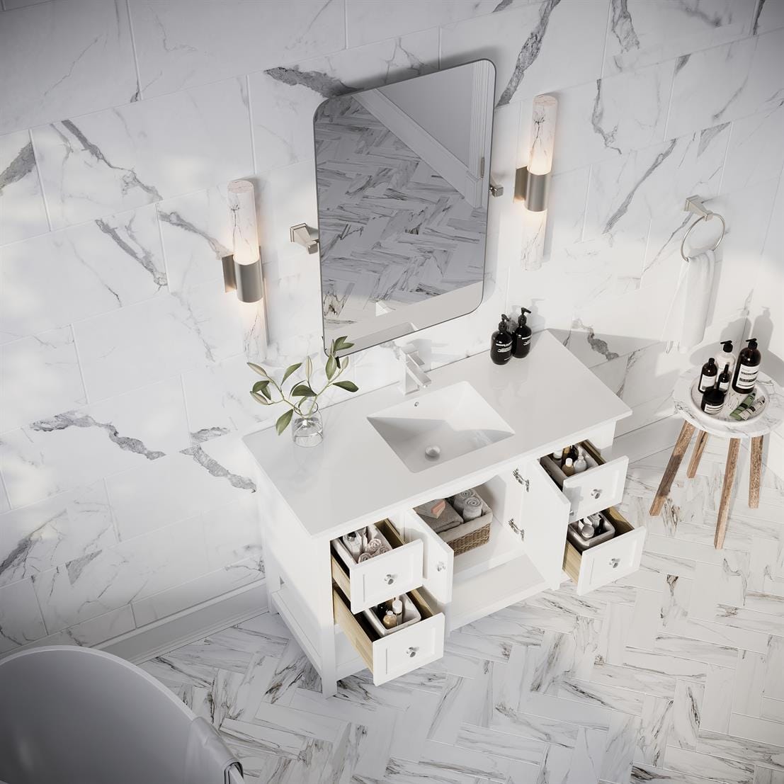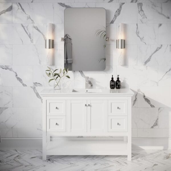 - 48″ Shaker-style vanity ideal for medium to large bathrooms