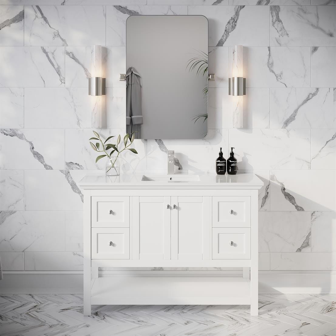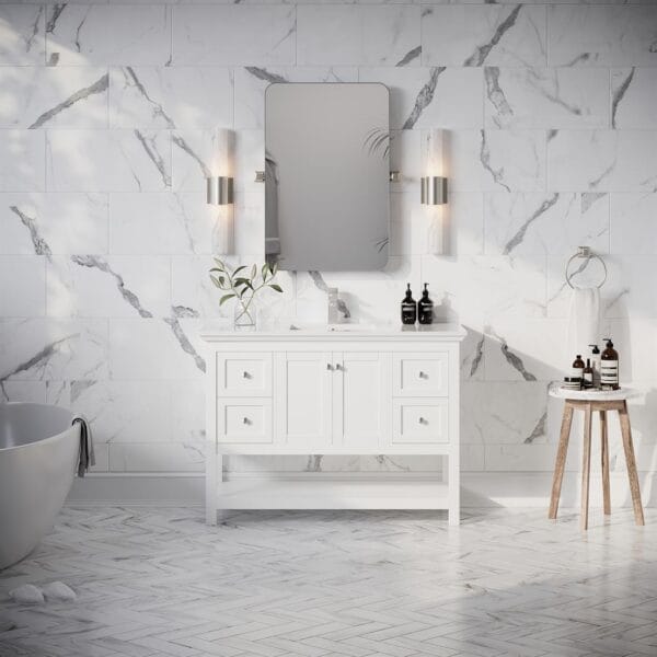 Manchester 48″ White Traditional Bathroom Vanity with Mirror