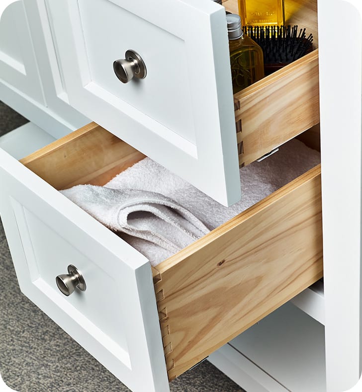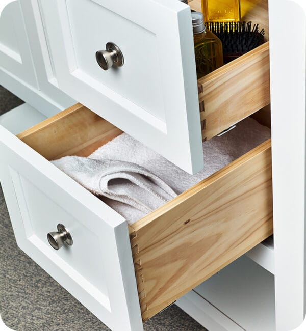 - Four soft-close drawers and a double-door cabinet provide versatile storage