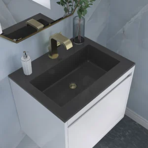Glossy White or Charcoal Black Composite Stone integrated top and sink.