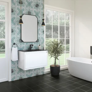 Inspired by the minimalistic Scandinavian aesthetic, the 31.5” Mantova Single vanity in Glossy White by James Martin Vanities features clean lines and a geometric silhouette. The Mantova is the perfect blend of modern function and elevated design. For ultimate versatility, this collection can be installed floating or freestanding.