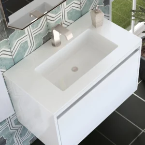 Glossy White or Charcoal Black Composite Stone integrated top and sink.