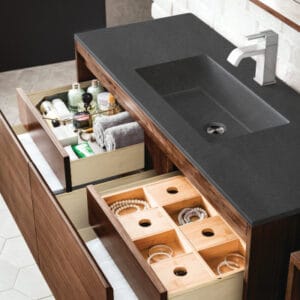 The Mantova 47.3” Glossy White Single Vanity by James Martin Vanities will elevate your space by adding a touch of timeless décor to your bathroom. This vanity combines a cutting-edge design with pristine craftsmanship to bring your bathroom a clean modern look providing you with both style and functionality.