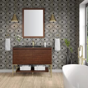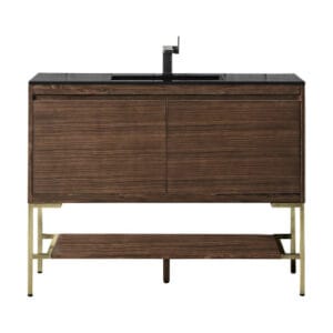 Mantova 47.3″ Single Vanity Cabinet, Mid Century Walnut, Champagne Brass Base