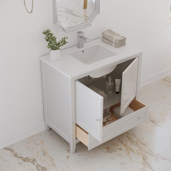 Elevate your bathroom with the Fresca Oxford 36” Traditional Bathroom Vanity, a perfect blend of classic design and modern functionality. This beautifully crafted vanity features a sophisticated finish, elegant detailing, and a durable construction that enhances any traditional or transitional space. Designed for both style and practicality, the Oxford vanity offers ample storage with two soft-close doors and a spacious drawers, keeping all your bathroom essentials neatly organized.