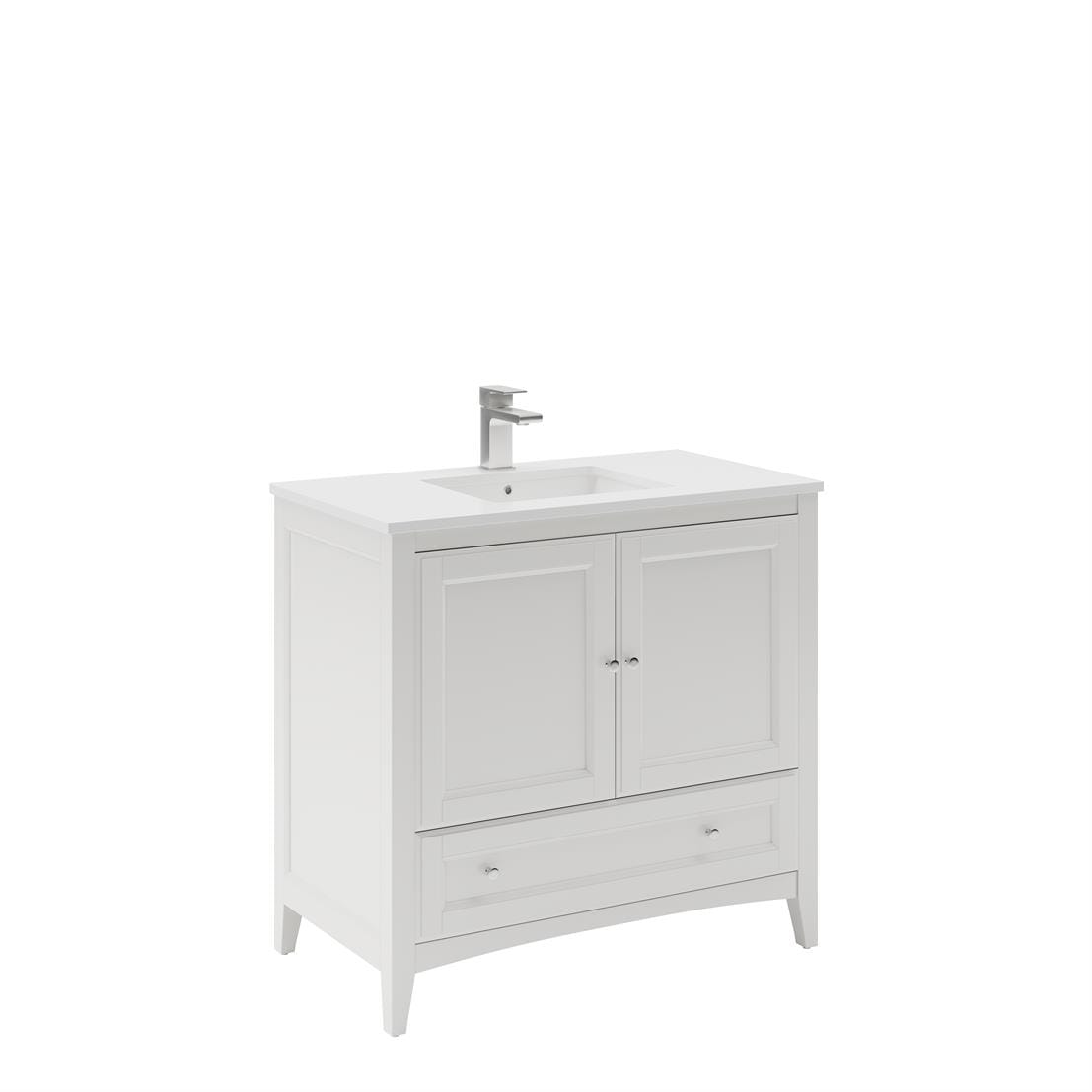 Refine your bathroom with the Fresca Oxford 36” Traditional Bathroom Vanity Set, featuring a solid wood frame, premium quartz countertop, soft-close storage and matching mirror. With timeless elegance and ample space, this vanity is the perfect blend of style and functionality.