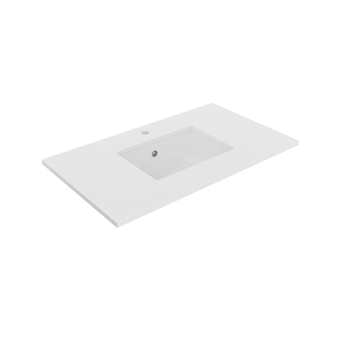 This unforgettable vanity also features a gorgeous countertop and a beautiful backsplash. Made from quartz and available in white or brown finish, the countertop is thick and sturdy enough to support anything that lays upon it.