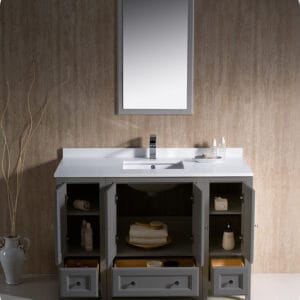 At the center of this beautiful vanity is a sturdy and appealing solid wood frame. Not only is this tough enough to remain intact after years of use, but its gorgeous gray color allows it to remain the focal point of the room. Within the frame you’ll also find expansive storage space, thanks to the enhanced design of the two side cabinets. When combined with the dovetail drawers underneath, you won’t have to search for an extra place to store your toiletries.