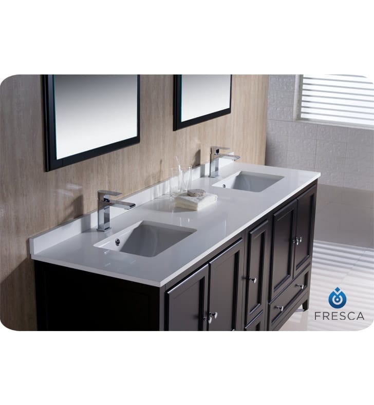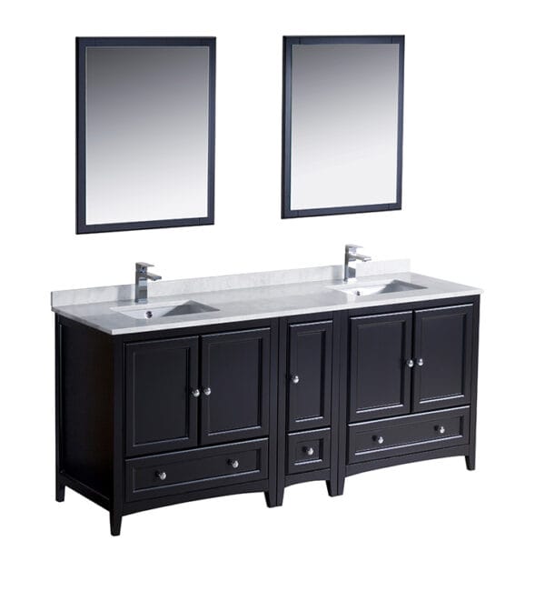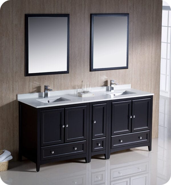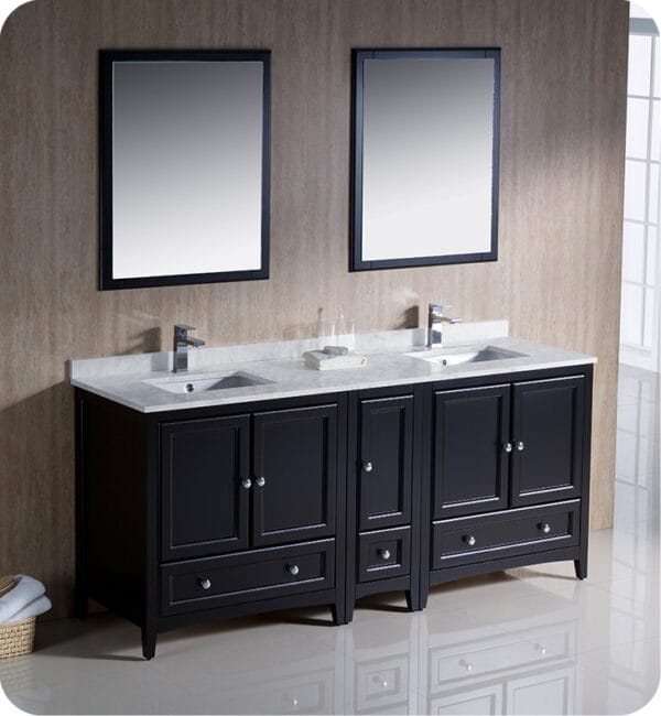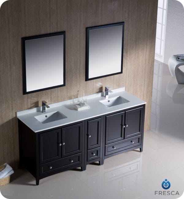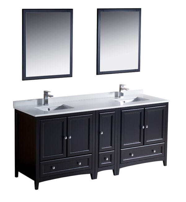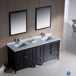 Oxford 72″ Traditional Double Sink Bathroom Vanity with Side Cabinet in Espresso