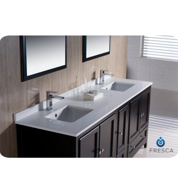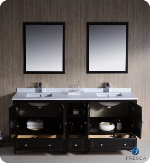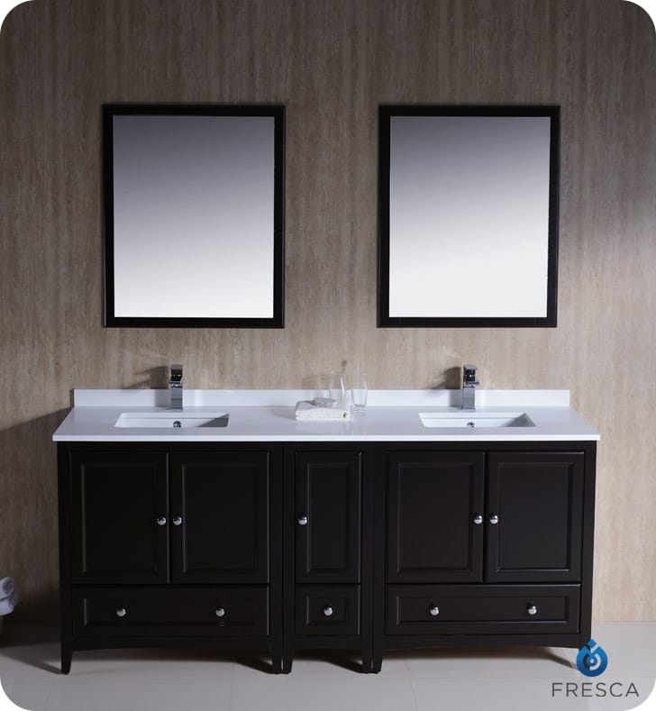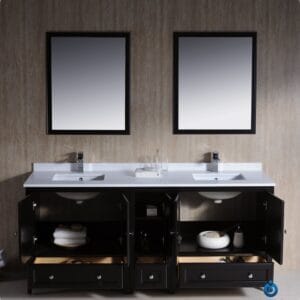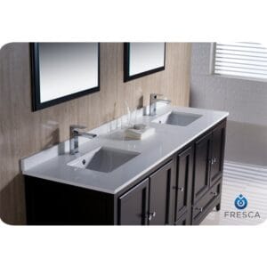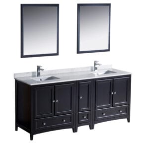 Seamlessly blending sophisticated form and intuitive function, the beautiful Fresca Oxford 72″ Traditional Double Sink Bathroom Vanity with One Side Cabinet can bring that little something extra to your home bathroom. The beautiful Mahogany finish also matches a range of decor schemes, from traditional to modern and contemporary appeals.