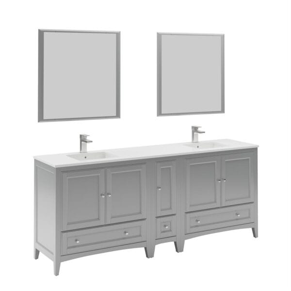 Oxford 84” Gray Traditional Bathroom Vanity Set with Countertop, Double Sinks and Mirrors