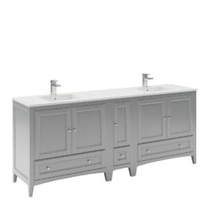 Oxford 84” Gray Traditional Bathroom Vanity Set with Countertop, Double Sinks and Mirrors