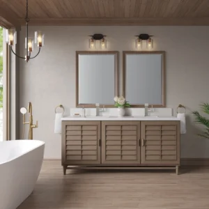 Portland 72″ Double Bathroom Vanity in Whitewashed Walnut