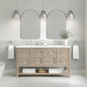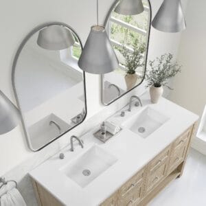 The Rohe Mirror Collection by James Martin Vanities offers an elegant selection of mirrors that blend timeless sophistication with practical versatility. Available in seven sizes, four metal finishes, and four unique shapes – rectangle, octagon, round, and arched – the Rohe mirror caters to a variety of design preferences and aesthetics, ensuring the perfect fit for your home.