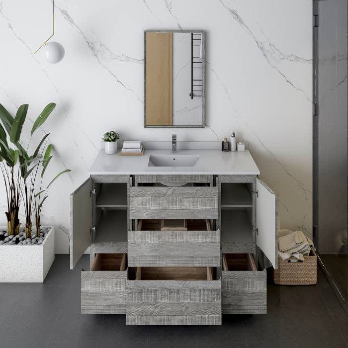 Choose the frame that fits your footprint and aesthetic. For a furniture feel and extra cabinet volume, browse our freestanding vanities. If you prefer visual lightness and easier floor cleaning, see our wall-mounted (floating) vanities.