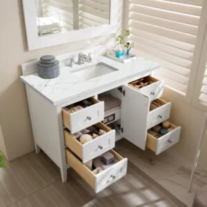“We ordered a double-sink vanity and it simply came out better than I expected. Looks a lot better in person and stunning quality. I am very happy with my purchase! I am not even a review typing guy but I gotta say, if its bathroom vanities, this is the place! “